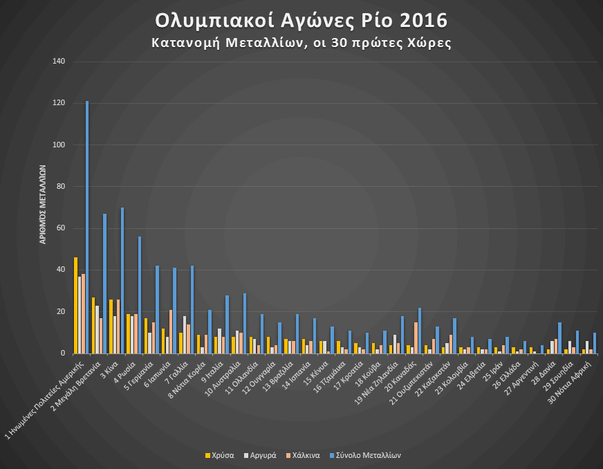 | 1 | 1 | Ηνωμένες Πολιτείες Αμερικής | 46 | 37 | 38 | 121 | 558 | 324 | 1.7 | 0.37 |